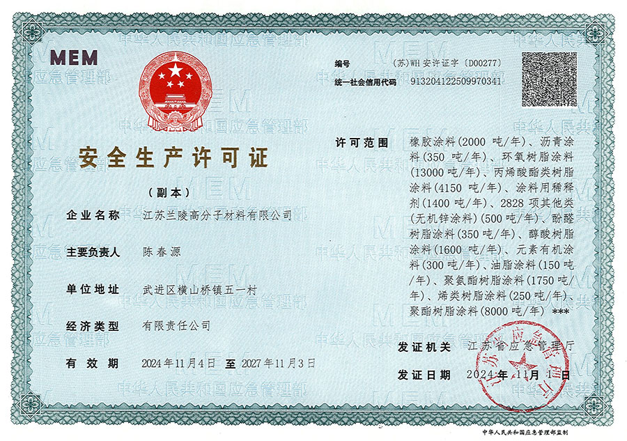 Safety Production License Operating Licenses for Hazardous Chemicals